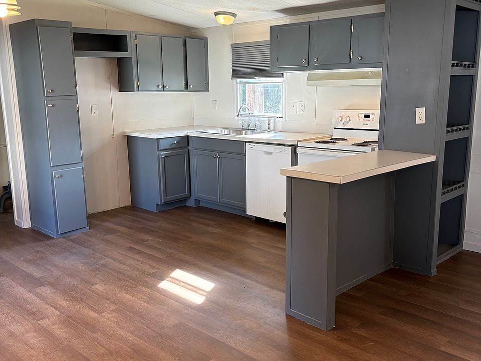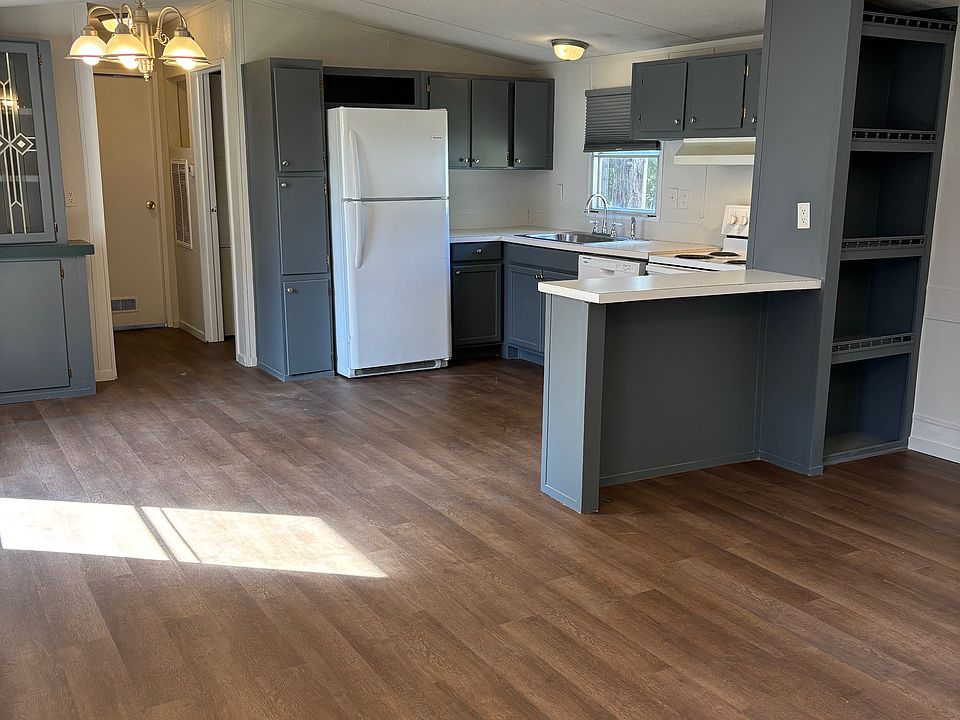 New dishwasherLuxury vinyl floorsBuilt-in hutchLarge kitchenCovered front porchLots of storageNew bath vanity