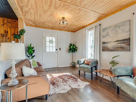 This beautifully updated 2 bedroom, 1 bath home packs plenty of style. Step onto the welcoming covered porch and take in the peaceful water views of the South Fork Holston River before heading inside to a space full of warmth and character. The open layout features a rustic-modern mix of updated finishes. The cozy living area flows into a stylish kitchen with natural wood cabinetry, stainless appliances, subway tile backsplash, and lots of style. Both bedrooms are light-filled and comfortable, while the bathroom wows with designer wallpaper, bold navy vanity, and crisp white tile surround. Outside, the fenced yard and blooming landscaping create a perfect spot for pets or a small garden. Metal roof, updated windows, and thoughtful touches throughout make this home as practical as it is picturesque. Enjoy morning coffee on the porch or evening sunsets over the water — this is small space living done right! Convenient to Bristol, Kingsport, and Johnson City, this property could be your perfect full-time home, short-term rental, or weekend retreat. Buyer/Buyer's Agent to verify and all information.