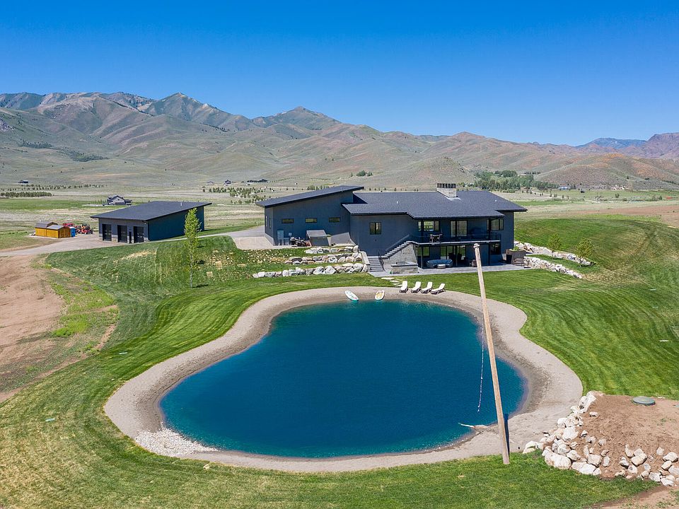Discover your secluded paradise just minutes from town! This stunning estate, zoned for agriculture and horses, sits on 32 acres and features a personal playground and panoramic mountain views. The main level boasts a primary suite, open floor plan with high ceilings, gourmet kitchen, and floor-to-ceiling windows that flood the space with natural light and breathtaking mountain views. Enjoy entertaining on the upper and/or lower patios. A 2700 sq ft shop with 4 garage doors, a bathroom, and laundry awaits your projects and toys.