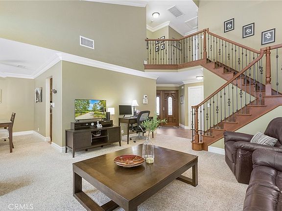 LOCATION! JUST A SHORT WALK FROM DOWNTOWN BREA WITH UPGRADES THROUGHOUT AND NO HOA! This two-story home has 2 primary suites, 2.5 bathrooms and approximately 1,547 sq.ft. Upon entering through the custom front door, you will step into a large living room with vaulted ceilings and a stunning stone fireplace. To the right of the living room is the kitchen, which includes a breakfast bar, plenty of counter space and cabinetry, a breakfast nook, and a garden window over the kitchen sink. The home's grandeur is further emphasized by a wrought iron and cherry wood staircase. Upstairs, you will find the two primary bedrooms. The main primary suite is spacious with plenty of windows for natural light and features dual mirrored closets that lead to the ensuite bathroom with upgraded touches such as a dual sink vanity, a toilet room, and a glass walk-in shower. The Jr. primary suite also has designer carpeting, an oversized wall-to-wall, full mirrored closet, and an ensuite bathroom with an upgraded vanity and a soaking tub with a shower. The garage has an epoxy floor and ample storage space. Additional highlights include custom windows with a beveled edge design. designer carpet throughout, large separate laundry room, several coat closets for extra storage and more! Additionally, the home boasts a serene and landscaped backyard with a garden hill and plenty of space for patio furniture, grass, or any other features you would desire for your backyard oasis. Located just a 5-minute walk from Downtown Brea with plenty of shopping, dining & entertainment options - this home is one you won't want to miss!