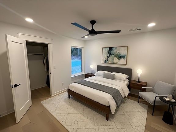 and a spacious walk-in closet. Guest bedrooms feature hand scraped wood floors as well, and