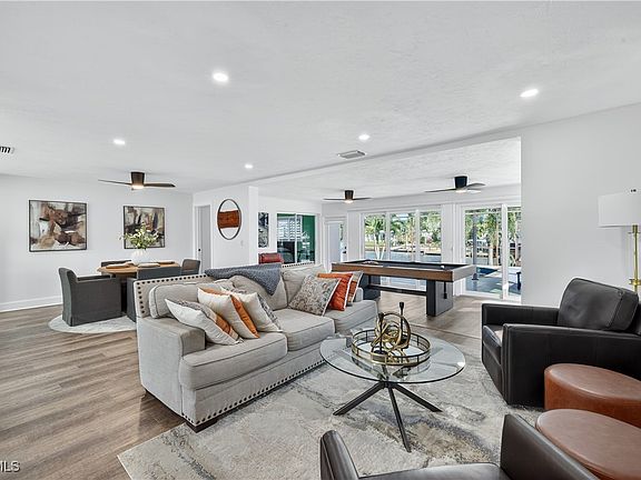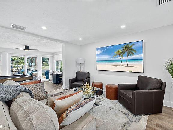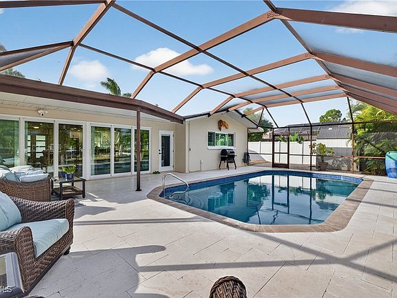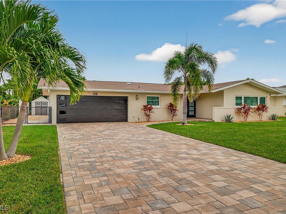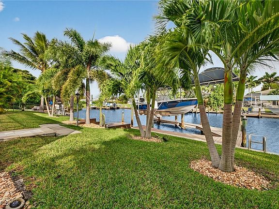 Calling All Boaters! Experience the ultimate Southwest Florida lifestyle in this completely upgraded and remodeled waterfront home near Tarpon Point and The Westin Resort. This 3-bedroom, 2-bathroom home with a 2-car garage offers nearly 1,700 square feet of living space and an expansive pool area overlooking the water—perfect for entertaining or relaxing. Virtually a new home, this remodel includes new floors, paint, a modern kitchen, updated bathrooms, impact windows & doors, and a beautifully redesigned pool area. Unlike typical remodels, this home is loaded with high-end finishes you won’t find elsewhere! Interior Highlights include an open-concept kitchen featuring custom new cabinetry, newer appliances, porcelain countertops, built-in Elkay filtered water dispenser, and a hidden Invisacook induction cooktop in the center island. The living room boasts panoramic water views, creating the perfect space to unwind or entertain. The primary bedroom overlooks the water and includes a fully remodeled spa-like bathroom. Escape to your outdoor oasis! Enjoy your completely remodeled pool area, featuring a Sandstone deck, glass tile accents, and additional paver decking. Fish from your private dock or take your boat out with deep water, direct sailboat access—NO bridges, NO locks, just minutes to open water via the Bimini Canal. Lush landscaping and a storage shed complete the tropical backyard escape. Prime Location, conveniently close to Starbucks, Target, Publix, top-rated restaurants, and parks. Golfers will love the proximity to Palmetto Pines Country Club and Coral Oaks. Just minutes from Cape Coral's newest developments—The Yacht Club, Bimini Square, The Cove, and Slipway—for even more fun things to enjoy by boat or car! Don’t settle for a partially updated home or spend a year remodeling—this home is move-in ready and completely transformed! Seller pays 3316 for flood insurance and it is transferable.