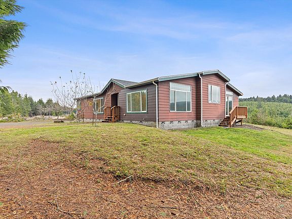 A well cared for 3-bedroom, 2-bathroom manufactured home that sits on more than 42 acres of productive timber land and offering privacy. Built in 2007, the home has seen recent remodeling that includes new LVP flooring, refreshed interiors, and tile counter tops. The layout is practical and comfortable, with an easy flow and open views of the surrounding forest land from the main living areas. The acreage totals 42.24 acres in TC zoning and carries a per merchantable timber estimate from a 2022 timber cruise of approximate $20,000 in value, giving the next owner both room to breathe and long-term resource potential. Beach access is about 1.5 miles away, making the coast close enough for a quick trip without giving up peace and quiet. The property also includes an 864 square foot detached garage built in 2011, along with an 864 four square foot detached shop built in 1992. Together they offer solid storage, workspace, and room for equipment. This is a rare chance to own substantial acreage with a well-kept home, two useful outbuildings, and coastal convenience.