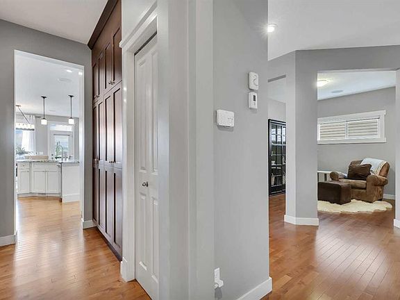 Welcome to this inviting two-story family home, first time on the market, nestled in a friendly neighborhood. This residence offers plenty of room for your family's needs with four bedrooms, 3.5 bathrooms, and over 2,600 sqft of living space. The exterior features a classic design with a well-maintained lawn, a large green yard, and mature trees perfect for outdoor living and entertaining. The oversized double garage provides convenient parking and ample storage, large enough for a full-size truck, and includes an access door directly to the backyard. The full-sized deck, made from durable composite materials, offers stunning views and is ideal for relaxing or hosting gatherings. The backyard also features a luxurious hot tub with built-in speakers, creating an ideal setting for unwinding. Inside, the spacious foyer leads to a versatile multi-purpose room perfect as an office or dining area. Adjacent is a large dining area with views of the backyard, providing an inviting space for family meals. The main living room is filled with natural light from large windows, creating a warm atmosphere. A classic white mantel with a decorative gas fireplace anchors the room, complemented by elegant hardwood floors that enhance its charm. The stunning kitchen combines functionality with modern elegance, boasting sleek white cabinetry, ample storage, and a large granite-topped center island ideal for meal prep and casual dining. Upgraded stainless steel appliances, including a built-in microwave and WOLF oven, add convenience, while pot lighting gives a contemporary touch. Upstairs, large windows continue to flood the area with natural light, with modern white trim adding an elegant touch. The layout includes three bedrooms, with a luxurious primary suite featuring unobstructed views of the fallcolours. This retreat includes a dual-sink vanity, soaker tub, large walk-in closet, and glass shower. An upstairs laundry area enhances convenience. The fully developed walkout basement adds over 1,000 square feet of additional living space, including a spacious bedroom and full bathroom, perfect for guests or as a home gym. Built-in speakers in the basement provide an entertainment experience. This beautifully maintained home blends comfort, style, and functionality. With stunning views, outdoor living spaces, and thoughtful upgrades, it’s ready for your family to make it your own.