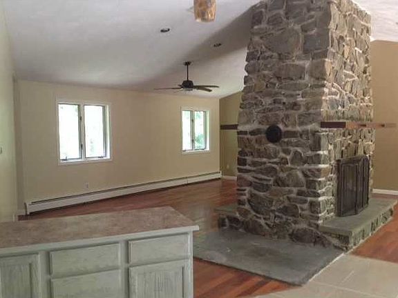Unique custom designed and very dramatic RR on secluded 7+ acres with brook EIN KT NEW SS appliances open to LV & DR with center FP and soaring ceilings huge Master suite & 2 large bedrooms .Finished lower w/FP in law potential this is a must see......for lease at $2000 per month or for sale call for details and private showing Utilities paid by renter...credit score of 600 or higher..