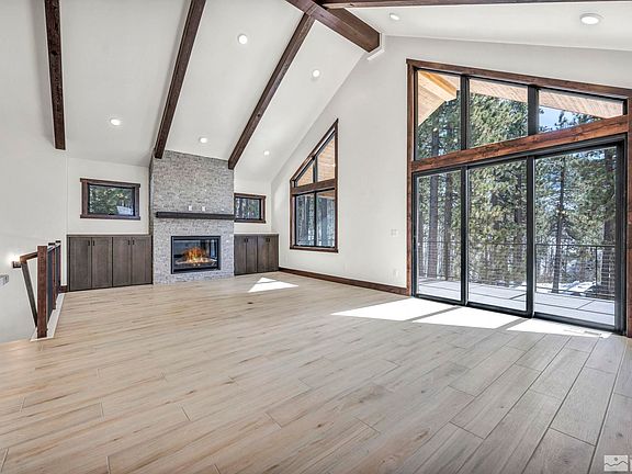 Final Meadow plan available at Sierra Colina—one of only two single-family homes remaining in this gated East Shore community. This move-in-ready, single-level home features 3 bedrooms, 2.5 baths, soaring 19’ ceilings, a stone fireplace, and expansive windows with mountain views. Enjoy luxury finishes, a SubZero fridge, a WOLF range, and Quartz countertops. HOA maintains the exterior. Includes Tahoe Beach Club buy-in. Minutes to Zephyr Cove, skiing, and Nevada tax advantages., The interior boasts soaring 19-foot ceilings that create an open, airy atmosphere, anchored by a dramatic floor-to-ceiling stone gas fireplace—sure to become the heart of the home. Expansive Andersen windows flood the space with natural light and frame breathtaking views, while a Western double sliding door leads to a covered deck with uninterrupted vistas of the Tahoe landscape. A spacious two-car garage includes a dedicated storage area for all your ski and lake gear. Inside, enjoy high-end finishes such as a built-in SubZero refrigerator, Wolf oven and range, dark gray shaker-style cabinetry, quartz countertops, and upgraded tile flooring with the warmth and look of hardwood. This turnkey residence is ideally located just minutes from world-class skiing, dining, shopping, and entertainment in South Lake Tahoe. Built by Ryder Homes, the property is backed by a 1-year builder warranty and a 10-year construction defect warranty, offering added peace of mind as you enjoy luxurious mountain living in one of Tahoe’s most desirable gated communities.