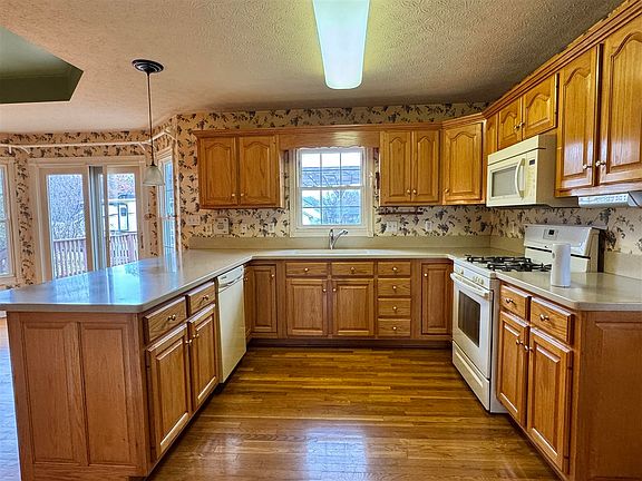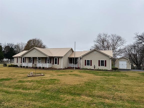 Welcome home to this spacious, nearly 2000 sq ft, 3 bedroom, 2 bath property located in a quiet, established neighborhood. Step inside to a large living room featuring a cathedral ceiling and cozy fireplace. The oversized kitchen offers an eat-in dining area, breakfast bar, and beautiful trey ceiling providing the perfect layout for everyday living and entertaining. The primary suite is generously sized and includes a jacuzzi tub, double vanities, tile shower, and a walk-in closet. Outside, enjoy an enormous deck with a peaceful koi pond, a fenced back yard, a breezeway, a covered front porch and a storage building for extra convenience. The home also features a 2 car attached garage and a 14 KW generator for added peace of mind. This home offers fantastic space and charming features and is situated on over half an acre.