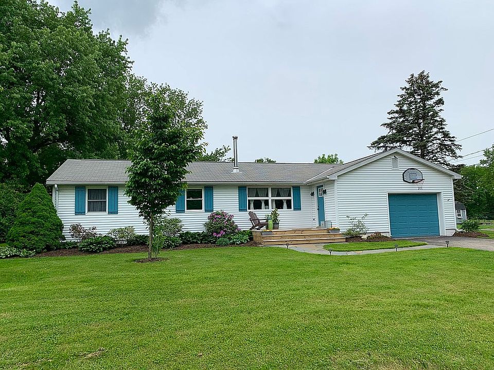 Beautiful ranch situated on over an acre and you can move right in! Home has been very well taken care of and has had many upgrades during ownership. All one floor living with a large living room with wood stove, gorgeous eat in kitchen with plenty of cabinets and all nice appliances. Large first floor laundry room, 3 nice size bedrooms and beautiful patio that overlooks a lovely landscaped yard! Gorgeous hardwood floors, updated kitchen, new back porch, custom countertops, new front porch and walkway, some new windows, outdoor pavilion built, and wood stove/hearth installed are only some of the updates! Large outbuilding for all of your extra hobbies!