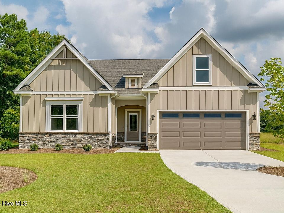 Bonus roomBoard-and-batten sidingStone accentsGenerous pantryCraftsman-style residenceLarge rear patioPrivate first-floor primary suite