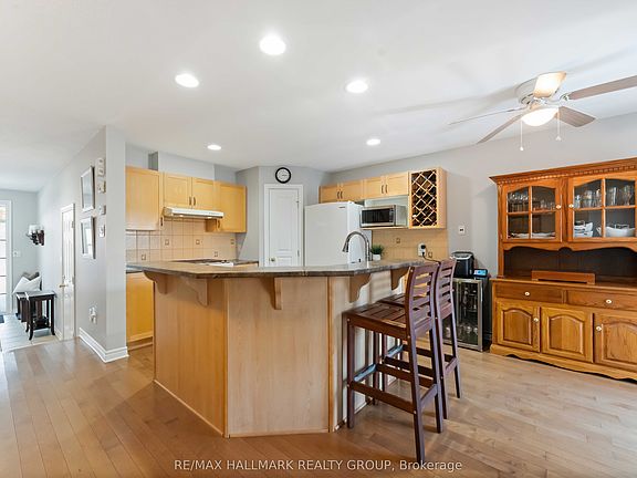 Welcome home! This beautifully cared-for townhome blends comfort, light & modern design. Step into the open concept main floor, featuring rich hardwood flooring, generous windows that flood the space with natural light, and a stylish kitchen complete with a breakfast bar and a handy pantry - perfect for both entertaining and everyday living. Upstairs, you'll find a spacious primary suite with a walk-in closet and a private 4-piece ensuite. A bright skylight fills the second level with beautiful natural light, highlighting the convenient laundry area and two additional bedrooms that provide ample room for family, guests, or a home office. The fully finished lower level offers a cozy family room with a gas fireplace, a large window, and plenty of extra storage space. Enjoy the outdoors in your sun-soaked, south-facing backyard featuring a large deck and a private patio-ideal for relaxing or hosting summer get-togethers. Set on a quiet, family-friendly street, this home is just moments from top-rated schools, parks, and local amenities.