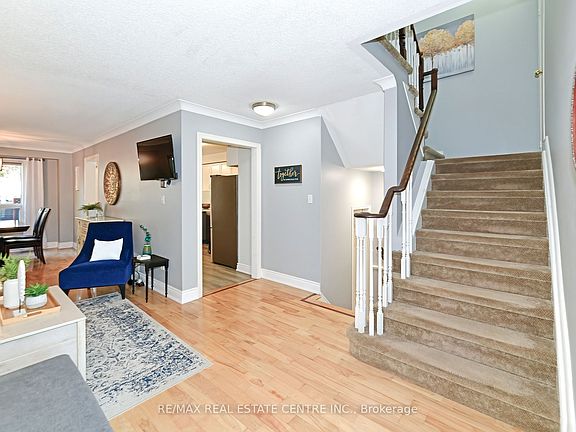 Beautifully maintained! Step through the new front door to gleaming hardwood floors on main level with Berber carpets on second floor. Bright new kitchen with: quartz counters, all stainless steel appliances, over-the-range microwave, custom backsplash, breakfast bar, walk-out to deck. All bathrooms updated. Crown mouldings and painted in neutral tones throughout. Double sided gas fireplace views from living & dining area. Finished basement - the perfect man cave! Room to park 3 cars. Roof 10 yrs, windows 6 yrs. Superb location - parks, schools, highway access, walk to town! Don't miss this gem check out the HD tour and book your private showing today!