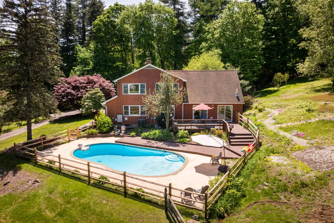 Set on beautifully landscaped grounds, this 4-bedroom, 3.5-bath home delivers all the private getaway vibes with a natural spring-fed pond, perennial gardens, a heated gunite pool. Inside, you’ll find a layout that’s as functional as it is stunning—anchored by a soaring Great Room with 20-foot ceilings and a wood-burning stove that begs ...
