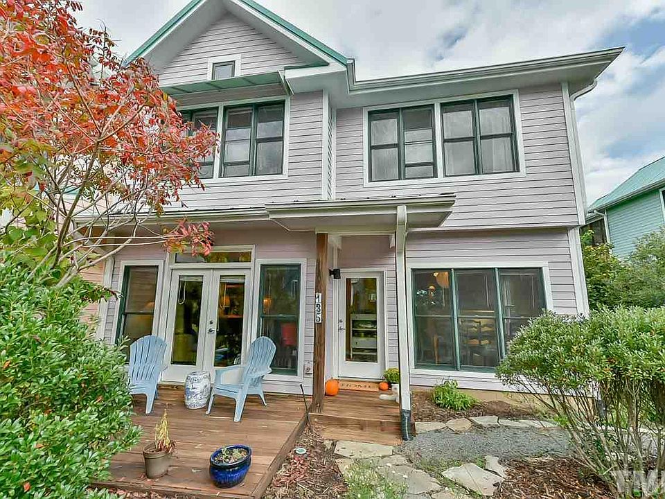 Nestled among the flower-lined wandering paths of the Carrboro co-housing community, Pacifica, this eco-friendly end-unit townhome awaits. Both passive and active solar with radiant heat concrete floors, metal roof, solar tubes, cathedral ceilings in 2 of the bedrooms, downstairs office, French doors, hardwood floors, gas fireplace and a private screened porch. Take advantage of the beautiful community garden, common house and guest house. Walk to Weaver Street Market, Wilson Park and more.