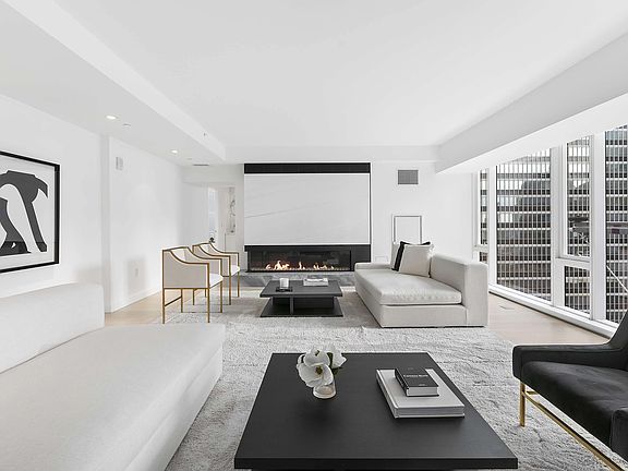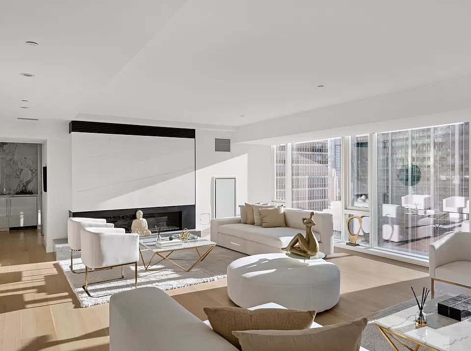 Price reduced to sell! Amazing opportunity and lowest price per SF. 135 West 52nd Street residence 35A is a BRAND NEW and masterfully designed full floor apartment comprised of 3,726 interior and 153 exterior square feet, complete with 4 bedrooms, three full and two half-baths, and a private terrace. Perfectly located in one of Manhattan's most exciting neighborhoods, 135 West 52nd Street has been expertly conceived by renowned architectural firm CetraRuddy, offering an exciting addition to Manhattan's ever evolving skyline. From the elevator landing, one is greeted by a wall of windows and an impressive great room wrapped in glass from all sides allowing light to flood in from the sweeping Eastern and Southern exposures. Located on the eastern side of the great room features a wet bar, built-in gas fireplace and library with Eastern exposure. Off of the dining room is a thoughtfully designed eat-in windowed kitchen with top of the line Miele appliances, and a luxurious array of finishes including Dada Italian Walnut and custom glass cabinetry and Calacatta Vision marble counter tops. The master bedroom features Northern and Eastern exposures, its own Eastern facing terrace, walk-in closets along with two full bathrooms with a shared shower and a free standing Kaldewei s soaking tub creates a true master bedroom. Each bedroom has its own windowed en-suite bathroom with marble floors The building amenities include a 75-ft lap pool, fitness center, spa, golf simulator and Kid's playroom, 24 Hour Doormen and concierge services. The complete terms are in an offering plan available from the Sponsor (File No: CD13-0179)