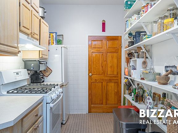 With its elongated layout, this residence with its hardwood floors is fun, unique and move-in ready. You’ll enter into the dining/living area with its intriguing room shape and large windows. A nicely remodeled open kitchen is directly adjacent, fitting flush up against the wall. Full-sized appliances, handsome cabinetry, and the creative use of open shelving add to the vibey appeal.