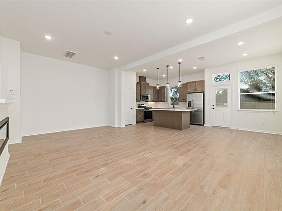 Welcome to your new home, never lived in new construction located in Woodforest community. Convenient to golf course, shopping, parks, pools, trails and schools. Walking distance to elementary school. Located on green belt. This beautiful home features open concept for living, dining and kitchen areas. Enjoy the lovely kitchen with gas stove, stainless steel appliances including refrigerator, under mount lighting, and pendant lighting above island. Tile flooring downstairs and electric fireplace. Primary bedroom has vaulted ceiling and bathroom has double sinks, soaking tub and walk in shower. Come visit and see this beautiful home for yourself. Ask about first responders special!