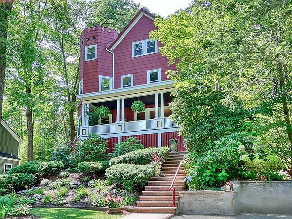 Don't miss this stunning Victorian set high among the trees! Serene gardens and greenery greet you from every angle as you enter this amazing turn-of-the-century home offering three full floors of living space. Enjoy watching the sunrise or just relax on the expansive porch. Entertain in style in the open concept living room / dining room. The updated kitchen lends itself to indoor dining or provides easy access to the back yard for al fresco meals. A walk-in pantry is a plus! The four second-floor bedrooms will accommodate family, guests, home offices or your own bonus space ideas. The finished third floor is a real treat. A fifth bedroom and a magical family room (or future master suite) are complete with a turret, perfect for reading, painting, stargazing or day-dreaming. Located just a half mile from the Highlands Commuter Rail in the hottest zip code in MA, this special home is waiting for you.