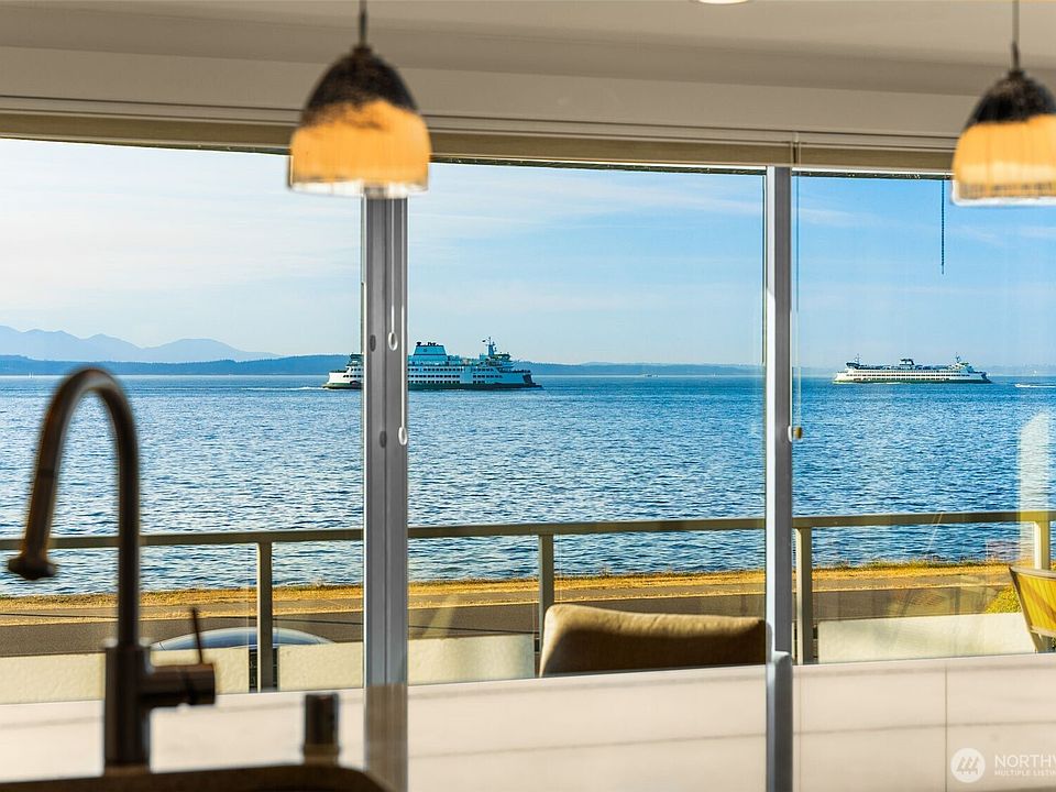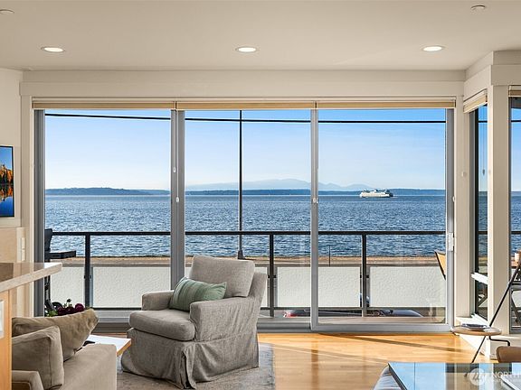 Experience sophisticated waterfront living in this rarely available contemporary boutique building. A secure elevator opens directly into your exclusive unit. Inside, floor-to-ceiling glass frames a dynamic view of Puget Sound, layered mountains & passing ferries. West-facing open floor plan is filled w/ natural light, inviting you to host or unwind while enjoying magnificent sunsets. Spacious primary ensuite offers a walk-in closet & five-piece bath (dual vanity, decadent soaking tub & spa shower). Excellent location! Easy access to scenic paths, beach parks, a promenade of restaurants, shops & cafes. Just a quick water taxi ride to downtown for work or play. High-quality construction, low dues & well-run HOA. Secure parking w/ EV charger.