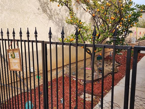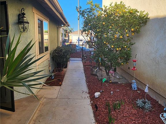 Massive Reduction! Seller Very MOTIVATED: See The well-maintained single-story 3 bed / 2 bath contemporary Colton California home, where sidewalks and neighborhood paved roads are lit for evening strolls or morning exercise routes. The covered Patio shades the concrete pad and serves as an outside retreat just outside the double glass sliding doors from the Living Room. The property has a front iron gate and block wall that encloses the yard providing privacy and boundaries adorned with three orange trees, that during aromatic blossoming, the colors splash the walkway to the front door! Past the Front door, life happens in a grand view of the dining, and living rooms which include an overhead Air fan that complements the Living Room's Vaulted ceilings. In the Kitchen, beautiful Granite countertops, including a prep/serving bar are enhanced by the many top and bottom cabinets enough to store what the Chef desires! The dishwasher and Gas stove/oven range are included along with the newer stainless sink with newer faucets just below the window which views the garden and covered patio area. The patio is accessed out the slider door from the living room, while the living room invites hospitality as it's open to the dining area and shows off a romantic fireplace. Down the hall, the master bedroom has private slider door access out to a bistro size patio to enjoy a cup of your favorite morning brew. Adjacent to the large master bedroom long two-sink vanity lines one wall and the built-in shelving and clothes closet lines on the opposite side proving space and storage. The Master bath is set for a small step over to the shower which is accompanied by sanitary hardware we all love to use that is in its own room. The guest quarters are two more sizeable bedrooms, with one of them serving as an office room that peeks out to the front yard from the window. The guest Full bathroom is opposite these large bedrooms.