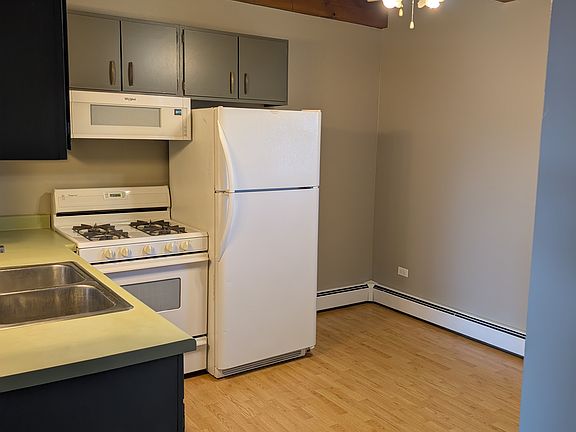 This charming apartment offers a comfortable living space with a blend of rustic and modern touches. The living room features dark wood flooring, beige walls, and a small closet. The kitchen is fully equipped with modern appliances, gray upper cabinets, and a light green countertop. The cozy bedroom has wooden flooring, a large window with blinds, and exposed wooden beams. The bathroom includes a bathtub, showerhead, sink with countertop and cabinet, toilet, and a mirror above the sink. Enjoy the outdoor space with a small wooden balcony that has weathered wooden floorboards and a railing. Located on the second floor, the apartment is accessible via stairs. Heat, water, and trash services are included in the rent, with only the electric bill being the responsibility of the tenant. Rent is $1,475, and if paid before the first of the month, you receive a $25 discount. Please note that no marijuana use and no pets are allowed. The minimum income qualification is three times the rent. This apartment provides comfort, style, and convenience. 1 year
