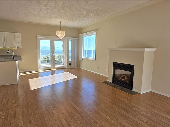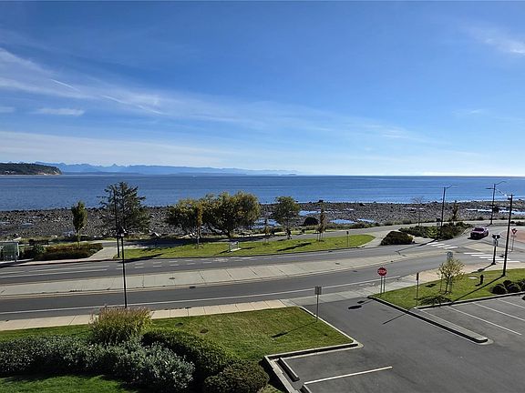 Observe magnificent ocean and mountain views from this top floor south and east facing condo. Pride of ownership is evident, lovingly maintained and freshly painted with neutral tones throughout. The gas fireplace is great to cozy up with while watching the moonrise or sunrise over Quadra Island. The spacious floor plan and 9 foot ceilings with skylight in the entry make this condo feel very spacious. The kitchen has loads of cupboards, newer stainless steel appliances, a large pantry and lots of countertop space. The dining room has large windows for tons of daylight, and new patio french doors lead to the covered deck with a gas hook-up and glass railing to enjoy the view. The primary bedroom is set to the back of the unit for peace & privacy, and has it's own 4-pice ensuite. And there is a 2nd bedroom with a full bath off the main hallway. The in-suite laundry has new washer & dryer and storage. The under ground secured parking includes one stall with another added storage locker.