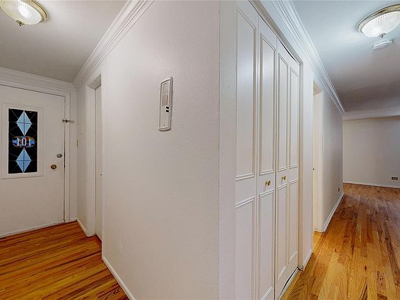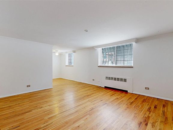 White shaker-style cabinetsGarden-level condoStylish mid-century modern touchesModern fixtures and finishesAmple closet spaceFresh paintOversized bedroom