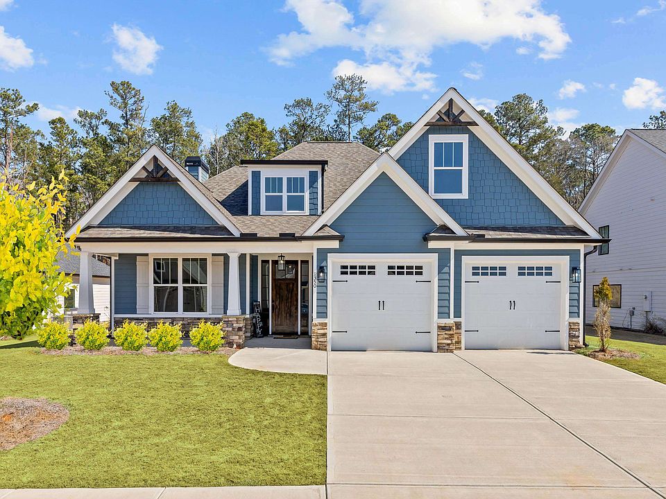 Don’t miss out on this Price Improvement! The Nottingham floor plan offers 4 BR plus Bonus Room, 3BA within approximately 2,817 sq. ft. The large Owners Suite is on the main level with trey ceilings, Revwood floors, views of the private wooded backyard and a luxurious bath that includes floor to ceiling tile walk-in shower, separate soaking tub, two separate vanities with quartz counter tops and sizeable walk-in closet. The main level also offers an additional bedroom/Office and Full Bath. This impeccably designed open floor plan has a quartz Island kitchen, upgraded stainless steel appliances, upgraded appliance package with drawer microwave oven and Breakfast Area overlooking the fireside Great Room. The upper level offers a loft area (perfect for a sitting/study area), two bedrooms with vaulted ceilings and a Tandem Bath (private vanities for each) plus a very Large Bonus Room. The tiled Laundry and Mud rooms are just off the 2-Car Garage. The private backyard offers a covered patio with a wooded view. Some standard features include a stone wood burning fireplace, ceiling heights of 9 ft., on the mail and 8 ft. doors throughout, painted 5” baseboards, professional landscaping/irrigation and more. Traditions at Carey Station truly sets itself apart with their diverse range of thoughtfully designed homes, each tailored to provide comfort, elegance, and modern amenities. These homes are built with craftsmanship and attention to detail, ensuring that every square foot meets the needs of today's homeowner. The neighborhood has enhanced the living experience with a community pool, covered cabana, tables, chairs and restrooms fostering a sense of leisure and spending time with family & new friends. Conveniently located to schools, shopping, dining, golf, and public boat ramps to access beautiful Lake Oconee. Builder is offering a $10,000 Builder Credit on select homes to the Buyer towards: Closing Costs, Select Upgrades or Loan Rate Buy-Down.