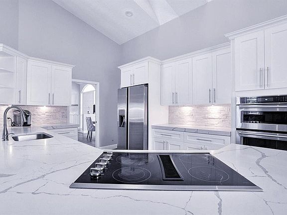 Luxury Turn Key is golf cart distance to WEF! This gorgeous property has a golf cart ready & waiting for you to take to the horseshow daily on paved path. Next to Wanderers Golf! Incredible white modern quartz kitchen, Carrera marble bath rooms, XL corner lot secluded & private. SO much room to run & play! Fenced yard, basketball court, XL heated pool & hot bubbling spa w/ stone accents under huge screened patio, outdoor dining, unreal MASSIVE open floorplan to entertain/watch kids!! Park like setting with secluded nature views! Inviting firepit & real fireplace, 5 bedrm, 4 bath w/split plan, 2 king cooling Tempurpedic & 3 queen Beautyrest beds! HDTVs & ceiling fans in each room, owner has years of history renting to top FEI riders. Your stay will be perfect and very relaxing. Gorgeous Brand new white modern kitchen, new quartz sparkle stone REAL fireplace, new ultra luxury 48'' tile flooring! Carrara marble baths are decadent, XL corner lot so much privacy & lush trees, basket ball hoop and concrete basketball pad in the fenced yard. Picturesque & impressive mature trees, secluded nature views, inviting FirePit, XL Remodeled Heated Pool with amazing Color Change lighting to create sunset or any color scheme you like on multiple lights, Gorgeous Stone Accents, Huge Bubbling Spa with Color Change Night Lighting, Massive Screened Patio Awesome for Outdoor Entertaining and Dining, Excellent Neighborhood to Walk, Jog, Bike Ride and Ride Golf Carts. Just 4 min drive to WEF Horse Show! 1 block away to Wanderers Golf and The Stables Restaurant is amazing for land & sea dining selections! Golfcart has all safety features, LED underglow color change, Bluetooth speakers, leather seats, the works! Owner has pool toys, pool basketball, basketball on rear court! Such a perfect location and property for your showing season!
