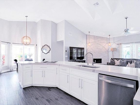 Fenced yardReal fireplaceModern quartz kitchenBasketball courtHeated poolLush treesXl remodeled heated pool