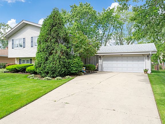 Enter through the front door to the spacious foyer. Upstairs the main floor has hardwood floors in the open living room, dining room and 3 bedrooms. The lower level has 2 more bedrooms, a bonus room and laundry room not to mention the large family room with wood burning fireplace and walk out to the fenced yard. Attached 2 car garage has lots of custom shelving and pull down lighted attic. Leaf guard system installed and newer patio lighting. A concrete patio and landscaping is a great place to entertain. This lovely 5 bedroom home is just a couple blocks to the grade school. This home held in trust is being sold as-is.