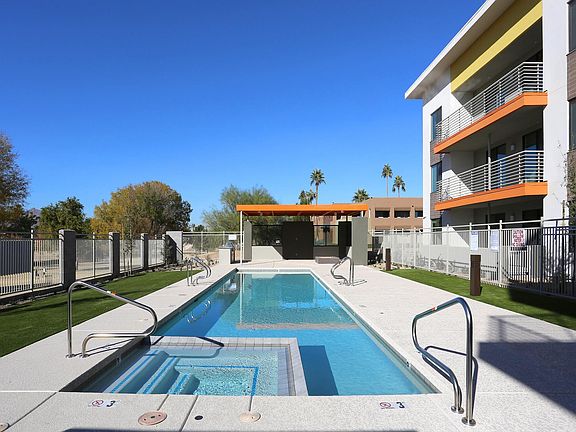The 77 on the Park is a boutique, contemporary apartment complex located on the Green Belt Park in Scottsdale. With only 22 apartments total, it is perfect for those looking to avoid the noise and hassle of living with hundreds of neighbors in a larger development. Floor plans are spacious and designed with care, containing a minimum of 2 master bedrooms with attached bathrooms and walk-in closets, and an additional powder room. Oversized balconies offer panoramic views of the park and surrounding mountain ranges. Other amenities include a fenced pool with barbecues and gazebo, private garages, air conditioned corridors. Ideal for those looking for a luxury apartment lifestyle in an urban park setting.