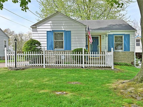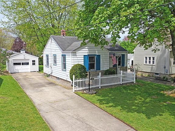 Welcome home to this freshly remodeled two-bedroom home, offering picture perfect living space all wrapped up in a tidy package! This cozy layout offers plenty of space and good looks throughout as the handsome white and blue exterior is sure to draw you in. A white picket fence leads to the covered front entry way as you step inside to the spacious carpeted living room. Natural light pours in from the surrounding windows while a tall sculpted archway yields the formal dining area, trimmed in tasteful two tone with an accented chair rail. The workable kitchen combined maximum efficiency and cabinet space alike while rear patio access is just step away. Opposite the home, both ample bedrooms branch away from a full central bath shod in elegant tile work. Built in hallway cabinets add to the available closet space. Downstairs, a sealed and painted basement offers both dry storage, workshop area, utilities and a finished bonus room for an easy third bedroom.