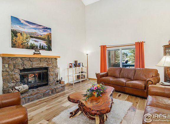 Wonderful location surrounded by mature trees, rock outcropping's with views of Longs Peak and Twin Sisters. New hard floors on the main level, living room with fireplace and vaulted ceilings. Large kitchen, newer appliances, dining area opens to family room. Spacious laundry room/pantry area. 2 bedrooms, full bath. Upper level with master suite, large bath, walk-in closet, private deck with incredible views, office loft area over looking the living room. Multiple deck areas around the home, new shed. Home has tons of storage, driveway comes out Tall Pines for plenty of parking.