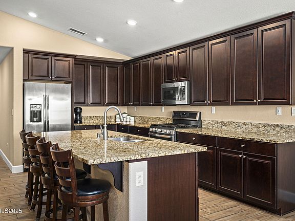 Welcome home to Schulz Ranch Community in Carson City! This beautiful-multi generational home is only a few feet down the street from the park. Open floor plan that is wonderful for entertaining, including an additional entertaining area in the backyard with a pergola for shade. High end tile flooring throughout, except for bedrooms, cherry cabinets throughout the home, solid granite slab counter top in kitchen with stainless steel appliances. Upgraded carpet with a plush pad in 2 of the bedrooms. Levolor cellular blinds through out the home. Astro turf in front yard for low maintenance, widened driveway with pavers on each side and a concrete pathway that goes around both sides of the home for easy walking convenience. This home has been well maintained and is ready for the next owners!