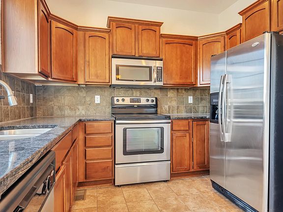 -Spacious kitchen has stainless steel oven/range, dishwasher, refrigerator, freezer, microwave), and tile granite counters