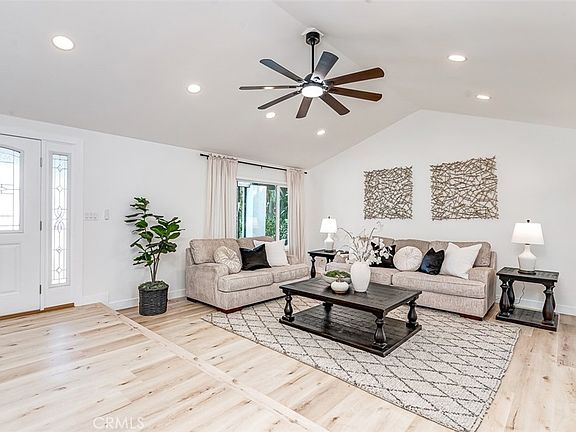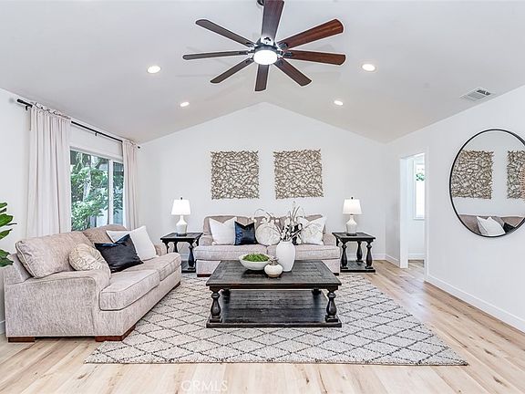Step into modern comfort and timeless design at 1350 S Ashington Lane, Anaheim. This stunning 4-bedroom, 3-bath two-story home has been tastefully remodeled inside and out, offering a perfect blend of style and functionality in a peaceful, family-friendly neighborhood near Mojeska Park. Bright and airy with vaulted ceilings and an open floor plan, the home welcomes you with luxury vinyl plank flooring, recessed lighting, and designer finishes throughout. The chef’s kitchen features quartz countertops, soft-close custom cabinetry, a large island, and premium stainless-steel appliances. A cozy family room with a fireplace, built-in coffee bar, and wine refrigerator makes entertaining effortless. The main level includes a full bedroom and bath—ideal for guests or a home office. Upstairs, the spacious primary suite offers a walk-in closet and a beautifully updated en-suite bathroom with dual vanities and a custom shower. The backyard is a private retreat with a sparkling pool, spa, covered patio, and newly landscaped lawn. Additional highlights include dual-pane windows, a new HVAC system, and fresh interior and exterior paint. Washer, dryer, and all kitchen appliances are included. Move-in ready and close to top-rated schools, shops, and freeway access.