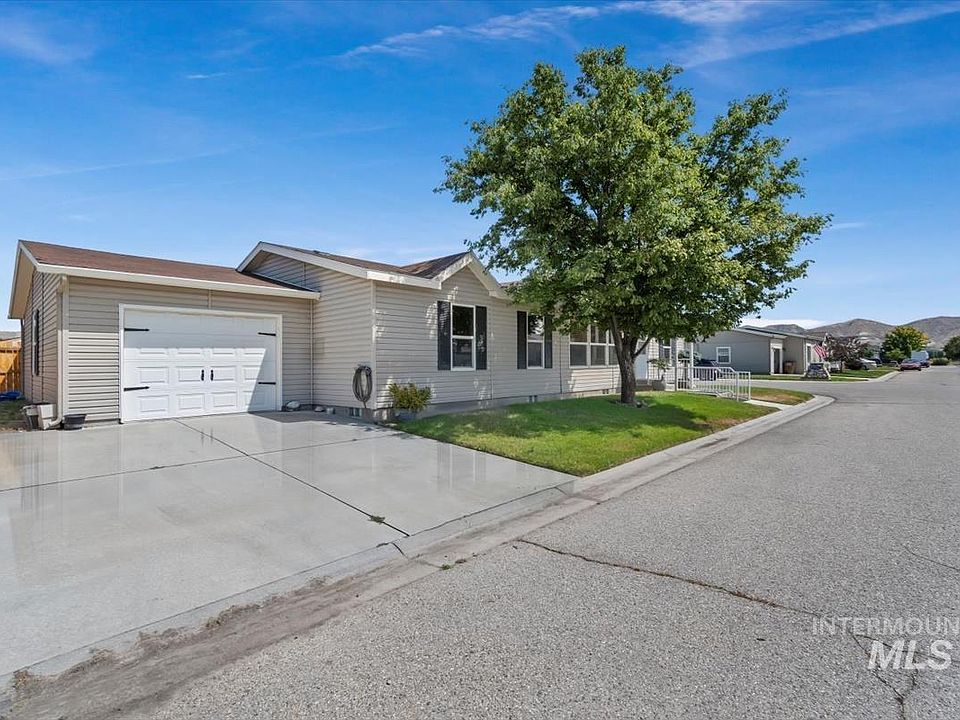 Immaculate single-level 3 bed, 2 bath home on a spacious corner lot with a split floor plan. Fresh interior paint, new LVP flooring throughout and vaulted ceilings in the large living room. Newly carpeted primary bedroom with spacious walk-in closet, ensuite bathroom with walk-in shower. All newer mechanicals, furnace, A/C, water heater and roof. Oversized 1-car garage with plenty of workshop space. Extended covered carport—ideal for patio use and room for RV parking. Low-maintenance yard, and no HOA dues. Move-in ready and immaculately maintained. Conveniently located close to shopping—this home is a must-see!