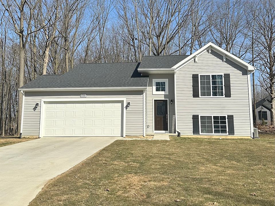 Welcome to this stunning 4-bedroom, 2-bathroom home on nearly a 1/2 acre, located in the highly sought-after Windfield Estates, in Carman-Ainsworth School District. Better than a new build because it has an installed lawn and awesome deck all ready to go!!!! Built in 2023, 1st owners in 2024, this new raised ranch style home (modern bi-level) offers over 1700 sq ft of living space, thoughtfully designed across two levels offers function and style. The upper floor has vinyl flooring throughout and features a spacious open-concept layout with a large great room and kitchen, with granite countertops and stainless steel appliances, both rooms showcasing soaring vaulted ceilings. The primary bedroom is a true retreat, complete with its own private bath and double closets. The lower level includes three generously sized bedrooms, all with daylight windows, and a full bathroom, offering plenty of room for family or guests. Enjoy the peace of mind that comes with a Resnet Energy Smart New Construction 10-year structural warranty, as well as a 5-year manufacturer warranty on the furnace, water heater, and air conditioner. The large 2 car garage is perfect for your recreational and/or storage needs. Sit out on the deck and enjoy the quiet wooded backyard. With its modern design, ample space, and prime location, this home is the perfect choice for those looking to settle into a beautiful, move-in-ready home with a large lot. Additionally, the home comes with a rented water softener (buyers can take over payments or sellers can remove it before closing). Don’t miss out—schedule your showing today!