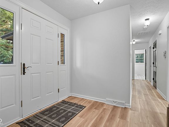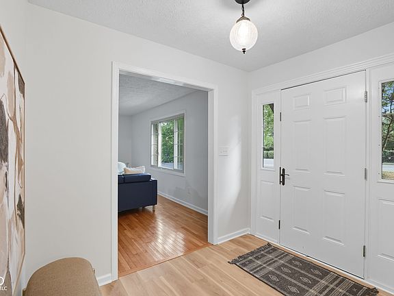 Fabulously renovated ranch home on a .38 acre lot surrounded by mature trees located in a fantastic Washington township location close to 86th st. corridor with shopping & restaurants, quick drive to US 31 & 465 and easy drive to downtown Indy* You will fall in love with the thoughtfulness behind all of the special finishes & custom touches in this home from a fully remodeled kitchen starting with brand new white cabinets lined with crown molding, dove tailed construction & soft close cabinets & drawers, Quartz countertops w/swirls of gold highlight the gold hardware & fixtures throughout the home* A splash of teal green custom tiled backsplash makes this kitchen pop! New LVP flooring, stainless appliances, "coffee" bar area w/wood floating shelves open into the hearth/family rm* Floor to ceiling painted brick fireplace with built in shelving & fun geometric wall paper give this space modern character* The hearth rm is a flex space to use as your family desires...sitting rm, dining rm, 2nd TV space....* Spacious living room with real hardwood flooring and large window overlooking the front yard* Wonderfully sized bedrooms with brand new carpet & lighting* Primary bed offers walk in closet, decorative wood wall & private en suite bath* Fully remodeled bath boasts cool starburst tiled walls in walk in shower, black plumbing fixtures, new decorative vanity, mirror & lighting* Hall bath was also remodeled with gorgeous tiled flooring, tile surround in tub/shower, furniture style vanity w/quartz top, decorative wood slat wall & all new fixtures* Freshly painted interior walls, trim, doors & ceililng + exterior trim, gutters & shutters* HVAC system ('20), Rinnai tankless water heater & vinyl windows* Beautiful new landscaping around the home & lot + paver patio area for outdoor living* Extra parking spaces for guests + oversized 2 car finished garage* Move in just in time to enjoy/entertain this Holiday season.