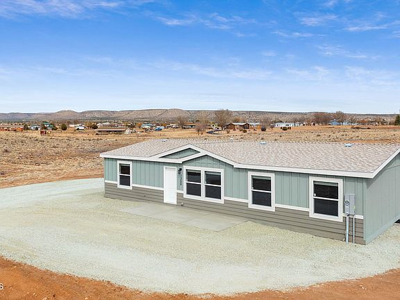 UPDATE: 3/22/25 CONSTRUCTION IS NOW COMPLETE! This BRAND NEW 4 bed 2 bath home sits on a beautiful 2.58-acre lot right off the pavement! You will love your new acreage boasting breathtaking views from the large front and rear concrete patios all in one of the best neighborhoods in Paulden. New private well producing 45+ gallons per minute! The home is ground set with no stairs to contend with. Plus, enjoy the many UPGRADES this home offers including 8' high flat ceilings, large master shower, stainless steel farmhouse sink, upgraded SS appliance package including a side-by-side refrigerator! 2'' faux wood blinds throughout, 2x6 construction with upgraded insulation & architectural shingles. 1-year warranty! Interior photos are of the same model but a different home.