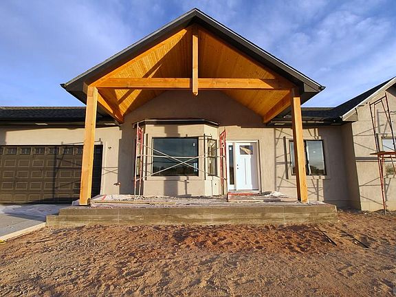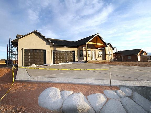 Don't miss the mountain views, beautiful surrounding homes and cliff views as you drive up to this new construction home with estimated completion in January 2026. This home exudes luxury starting with the oversized three car garage, upgraded dual toned windows, and grand, timber lined porch. This open concept home offers four bedrooms and three baths which include a primary and secondary suite perfect for an in-law suite or den/office. The kitchen is a chefs dream with a massive island, upgraded granite countertops, built in pantry and stainless-steel appliance suite which includes an additional built-in oven. The upgraded cabinetry with crown molding and custom trim offer an abundance of soft close cabinets with plenty of drawers and two hidden trash bins for a sleek everyday look. The living room has vaulted ceilings with stone accented fireplace. The primary suite offers an ensuite five-piece bath which includes a walk-in shower with dual wall and waterfall shower heads, a freestanding soaking tub and heated bidet! A walk-in closet with custom shelving complete the primary suite. The secondary suite is found on the opposite end of the home for privacy. The mudroom/laundry room has thoughtful upgrades including a sink and folding area with built in cabinets. Finished pictures are of a similar floor plan with basement. Flooring, wall colors and finishes are the same. Fireplace stone finishes will vary slightly. Buyers are welcome to see similar finished home in person.