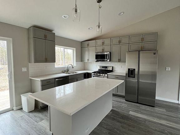 Welcome to this stunning 3-bedroom, 2-bathroom unit, designed with modern finishes and upgrades. Step into a bright and open living space featuring sleek quartz countertops, stainless steel appliances, and durable LVP flooring that flows throughout the home. The master bedroom is a true retreat, offering a spacious master bathroom with double vanities, which leads to a generous walk-in closet, perfect for all your storage needs. Located just minutes from town and offering easy access onto the highway, this home is perfect for those commuting to Anchorage or surrounding areas. Enjoy the beauty of the outdoors with a neighborhood park, complete with a scenic lake within walking distance. Plus, there are exciting future plans to landscape and add a grass yard in Summer 2025, making it an even more inviting space for outdoor living. Whether you're looking for comfort, convenience, or style, this unit has it all! Tenants are responsible for gas, electricity, trash, and mail service setup. School Boundaries: Snowshoe Elementary, Wasilla Middle & High Schools Directions: Parks Highway to Knik Goose Bay, turn onto Knik Goose Bay Road, right onto Endeavor, left onto Minnetonka, property is on the left.