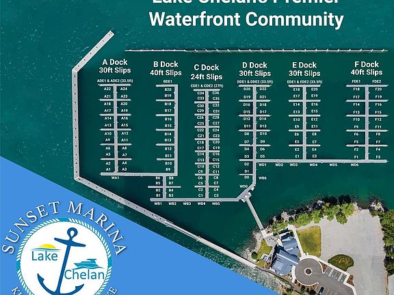 30' Boat Slip at Sunset Marina Lake Chelan's Premier Waterfront Community - A24, an excellent end location! Easy boat access, gated with water, power and WiFi to each slip. Slip offers huge unobstructed up-lake views with deep water moorage. Waterfront club house boasts an elegant and comfortable environment with a wet bar, large fire pit to enjoy the sunsets, BBQ stands, showers, laundry and an area for private parties. The facility may be enjoyed year round HOA Manager and Dock Master plus a pump station. Convenient location close to wineries, restaurants, shopping, waterslides and "The World's Largest Artificial Deepwater Standing Wave"! If that's not your activity then grab your bike, golf clubs or skis!