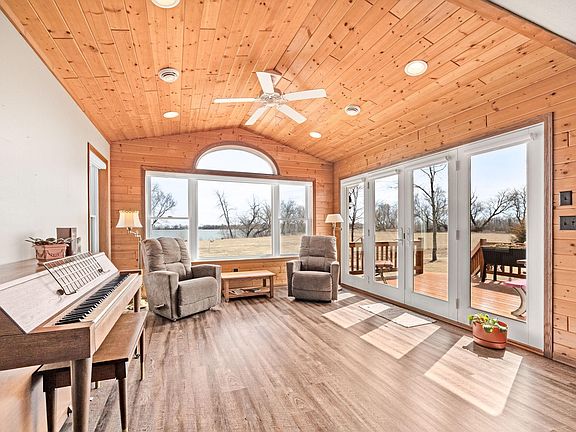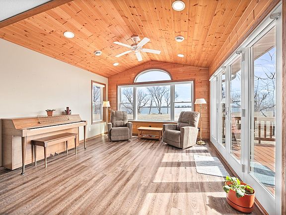 Welcome to this beautiful property located on the shores of Thompson Lake. This spacious, main-level living home is designed for comfort and style, offering an open floor plan that seamlessly connects the living, dining, and kitchen areas—perfect for entertaining or everyday living. The bright, inviting kitchen features a walk-in pantry, providing plenty of storage for all your culinary needs. Enjoy relaxing mornings or evenings in the sunroom, soaking in the views of the tranquil lake. The primary bedroom is a peaceful retreat, complete with an en-suite full bath and a walk-in closet. Step outside to your private deck, where you can unwind and enjoy the stunning lake views. The property sits on a level lot with direct access to the lake, ideal for fishing or simply enjoying nature. With 3.6 acres of land, there’s plenty of space to spread out and explore. Additional highlights include a double attached garage that is insulated and heated, providing comfort year-round. Don't miss out on the opportunity to own this incredible lakefront property.