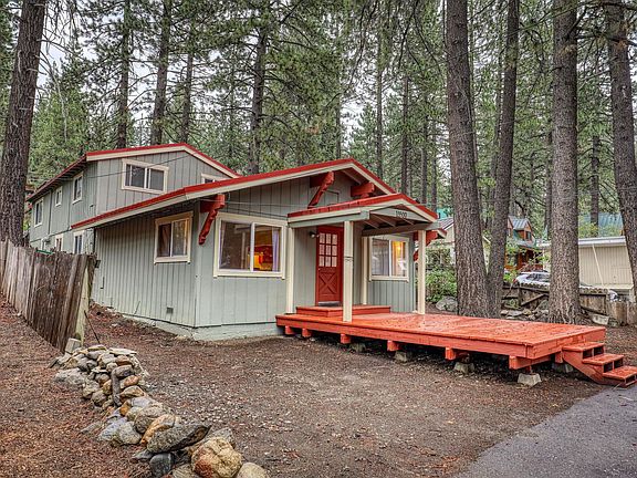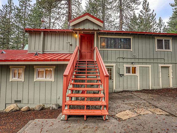 Donner Lake duplex offers many options and maximum flexibility! Set back from the street on a level lot with plenty of parking, this classic Donner home is a short walk to the famous public piers, Donner Lake Kitchen and Sticks Market. Short bike to downtown Truckee or West End Beach, ten minute drive to Sugar Bowl and Donner Summit. Remodeled in the 2000's with a metal roof and other upgrades, new carpets a few years ago with new floors and a fresh coat of paint this summer. Perfect for summer lake life, winter sports access and shoulder season tranquility. There's even a climbing wall in the back. Main floor house has 3 bedrooms, 1.5 bathrooms, kitchen, living/dining room, large storage room, private laundry, etc. Upper level apartment has private entrance, 2 bedrooms, 1 bath, kitchen, living/dining, laundry and an additional outdoor locked storage room. Live in one unit while renting the other, or rent both, or buy with friends/family and live in both, or live downstairs and work from home upstairs?? Local business owners...5 bedrooms of employee housing close to everything?