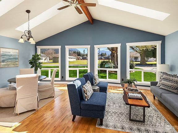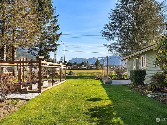 Welcome to your dream retreat! This charming 3-bed, 2-bath gem boasts nearly 1200 sqft of comfort nestled on nearly half an acre of lush, flat land. Experience the charm of open-concept living and kitchen areas, designed in an inviting A-frame style. Revel in the luxury of a newly remodeled kitchen and an en-suite bathroom. Admire breathtaking views of Mt Si through 4 grand windows from the comfort of your living/dining room. Outside, enjoy a deck off of the primary bedroom, a patio off the kitchen for easy bbq access, and a large garden space. A beautiful stamped concrete driveway was added in 2018. Escape to this tranquil retreat, where serenity meets sophistication. Live where you play.