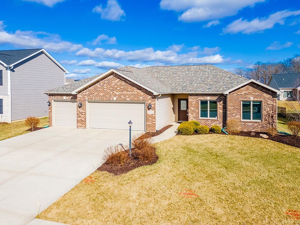 Welcome to Grabill (Only 8.6 miles to Parkview Regional Med Center) and Saddle Creek Estates. This meticulously cared for one owner ranch is truly "move in ready". The spacious open concept floor plan flows seamlessly from the living room into the kitchen, nook and sunroom/den. A foyer entry leads into the great room with a direct vent brick fireplace. The eat-in kitchen boasts Kenmore stainless steel appliances, custom cabinets, a center island w/double sink, a breakfast bar, a walk-in pantry, a coffee station and a spacious nook. Filled with light and expansive pond views the sunroom is the perfect retreat. 15x14 owner's suite has a tray ceiling, a 5-foot shower, a raised height double vanity and spacious walk-in closet. Conveniently located laundry room has additional cabinets and a Kenmore washer/dryer. Two nice sized bedrooms and a full bath complete the plan. The heated 3 car garage offers a 10x30 3rd bay for additional storage or a workshop. Custom extra's/upgrades include; Brick front exterior, Polymer maintenance free Pergola, 16KW whole house Generator, Fenced in backyard with Gates for easy mowing, Heater in garage, Water Softener, Home Security System, Tray ceiling in great room, kitchen and nook, Anderson casement windows, Ceiling Fans, Window Treatments, Digital Thermostat and beautiful Landscaping. Energy efficient with average utilities: Nipsco $65, AEP $65, Town of Grabill water & sewer $55.