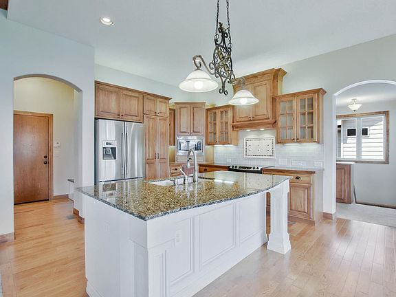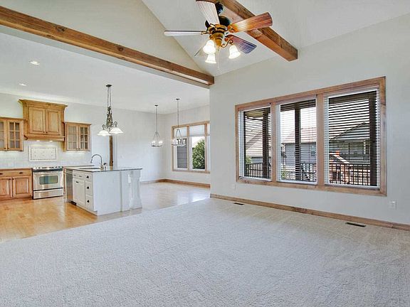 Former Randy Ketzner Model Home. This 5 bedroom 3 bath Ranch home features an open floor plan with high ceilings and wood beams in the Living room as you enter the home. Large Kitchen with Granite countertops and a center island, walk-in pantry and Rustic Beech cabinets. and Hardwood floor. All SS appliances. This is a split ranch plane with Brand New Carpet throughout the main level and on the stairway. Large master Suite with a master bathroom, featuring 2 sinks, a garden tub and a separate shower and very large walk-in closet. The other 2 main floor bedrooms are 11 x 11 and there is a 2nd full bathroom between the bedrooms. The covered deck off the kitchen area is 17 z 10 and maintenance free flooring and railing overlooking at fenced EAST back yard and then a flag stone patio below. The patio can be accessed from the deck or the lower walk-out. The basement is very open with a large Family Room and Rec. Room with a walk up Wet Bar and room for a full size fridge and there is a built-in Dishwasher. here are two bedrooms a 3rd full bathroom a large storage area and then there could be a 6th bedroom. The garage is all sheet rocked with 2 openers and is oversized and is 23' 9" deep. There is a well and sprinkler system and the special are now BELOW $5,000 total. This home is ready to move-in and get settled before this upcoming school year. Priced well below all the NEW Construction in the area.