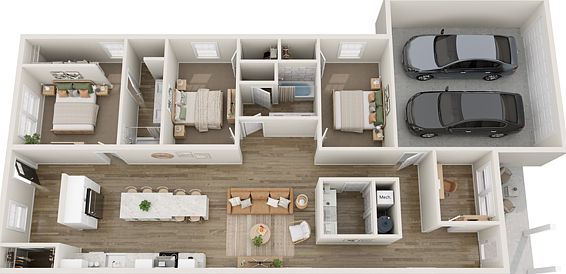 Additional bedroomsModern kitchenAttached two-car garageMaster bedroomAttached ensuite bathroomTop-of-the-line appliancesFront patio