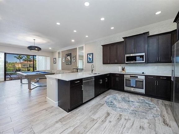 Modern light fixturesFresh paintElegant finishesOpen layoutDesigner wallpaperTasteful upgradesExtended fenced-in lanai